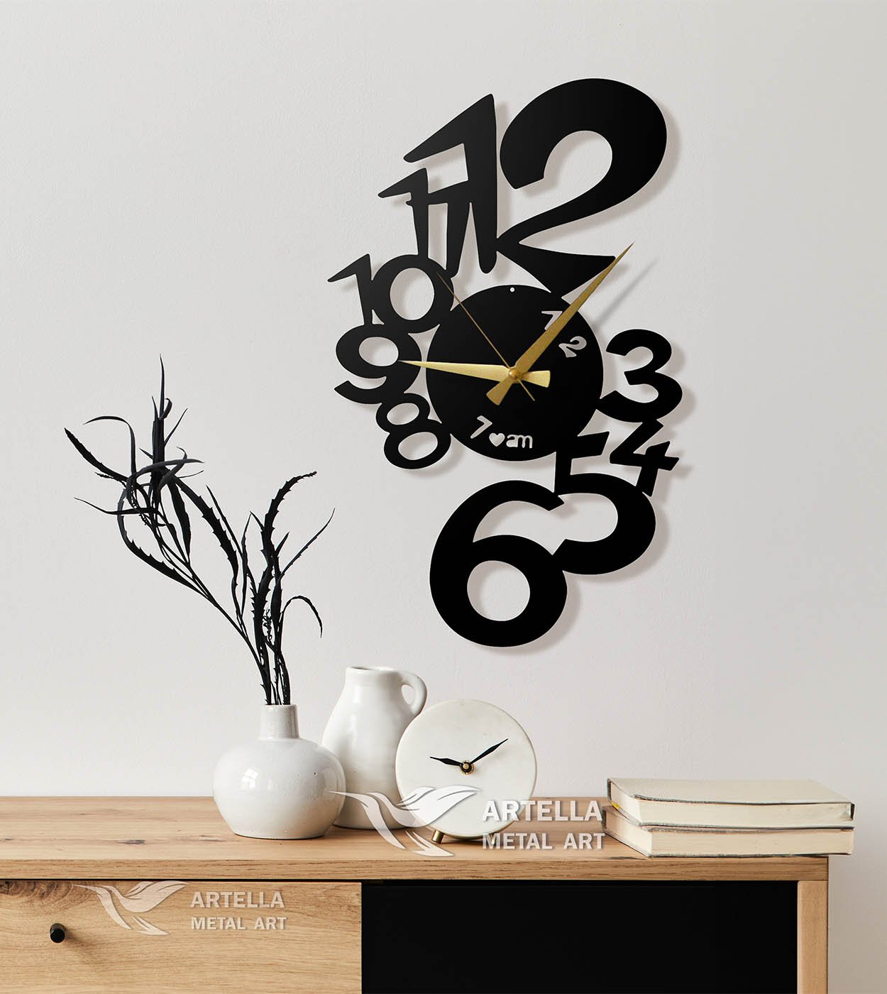 Овој часовник е изработен од висококвалитетен метал, со прецизност и посветеност на деталите. Создаден да трае и да остави безвременски впечаток во вашиот простор.